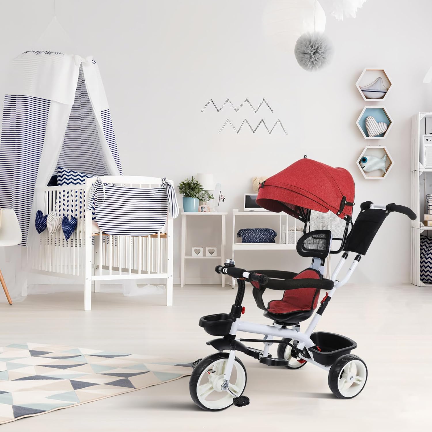 DescriptionOur toddler stroller is the for you kid's outdoor activities! With its sunshade design, it provides effective protection, ensuring your child stays comfortable. Not only is it functional, but it also has a fashionable appearance that will turn heads wherever you go. Features-Color:Red-Material:Steel, PP, rubber- Size: 120.00X115.00X50.00cm/47.16X45.20X19.65in - Kids Tricycle: This toddler stroller features a sunshade design that effectively avoids direct sunlight, keeping your child cool and comfortable.- Stylish Appearance: With its fashionable design, this toddler tricycle is sure to turn heads and make your child more eye-catching.- Lightweight and Portable: Due to its lightweight construction, this baby tricycle is easy to carry and store, ideal for family outings and travel.- Adjustable Size: The bike stroller can be adjusted to fit your child's height and age, ensuring a comfortable and safe ride.- Comfortable and Safe: Made from plastic and metal materials, this tricycle stroller is sturdy and safe, ensuring its durability and reliability.Package Including1 x bike stroller1 x manual1 x box