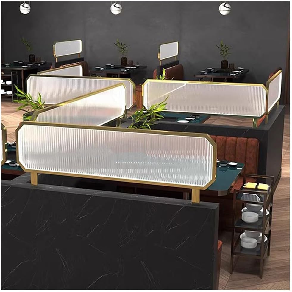Entrance Restaurant Desk Partition Divider:Transform your space with our versatile translucent tempered glass countertop partitions, designed to enhance privacy while maintaining a modern aesthetic. Perfect for both home and office environments, these partitions create a serene atmosphere where you can focus on tasks or enjoy meals without distractions. Crafted with a sturdy metal frame and high-quality tempered glass, our privacy screens offer an elegant solution to space separation. The translucent design allows natural light to filter through, providing a sense of openness while ensuring your privacy is respected. Ideal for dining areas, workstations, or any space where you desire a little more separation, these partitions are as functional as they are stylish. **SPECIFICATION** - **Item Name:** Privacy Screen / Translucent Partition - **Material:** Metal Frame + Tempered Glass - **Process:** Anti-Oxidation Coating - **Performance:** Translucent to Provide Privacy - **Appearance:** Rectangular - **Finish:** Rounded Edges - **Frame Color Options:** Black, Gold - **Dimensions:** Available in lengths of 80cm, 90cm, 100cm, 120cm, 130cm, and 150cm; heights of 30cm or 60cm - **Weight:** Approximately 5 to 13kg - **Installation:** Concealed Screw Design for a Clean Look **PACKAGE CONTENTS** - 1x Partition Screen Elevate your space with our stylish and practical privacy partitions, perfect for creating a comfortable and focused environment, whether at work or home.