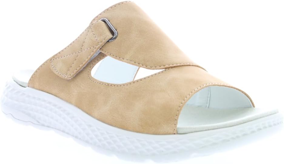 Lightweight slide sandal with adjustable hook and loop strap at the instep. Cushioning EVA footbed with microfiber lining offers all day comfort. Lightweight outsole combines EVA and rubber for long lasting wear and a deep tread pattern for traction.