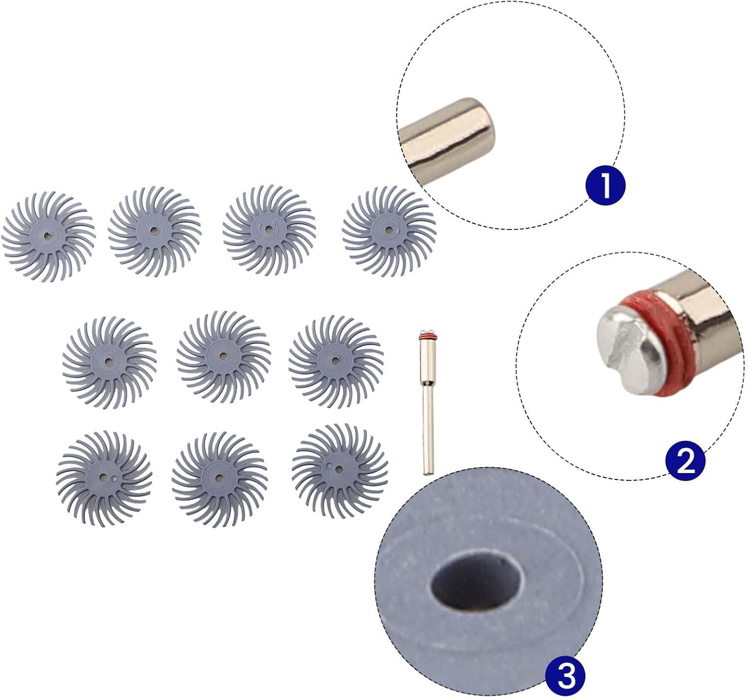Product description Features:* and*Made of material, and practical to use*The bristle materials are long lasting and very effective;*Amazing performance, no damages to the texture when polishing;*Perfect for cleaning and polishing;*There are plastic boxes for storage, making it easier to carry*For woodworking, dental laboratory, jewelry & crafts, die & moldfor shops Jewelry polishing,Specification:*Product Name:Abrasive Brush*Material: Nylon + Aluminum Oxide Grains;*Size:80#/120#/220#/320#/400#/600#/1000/#2500#Bristle Disc Diameter: 25mm(0.98inch);Shank Diameter: 3mm(0.12inch);QTY: 11PCS or 10PCS*Color:as the picture showsPackage Contents:10* Grinding Discs+* Extension Rod or 8* Grinding Discs+* Extension Rod Manufacturer Contact Information no