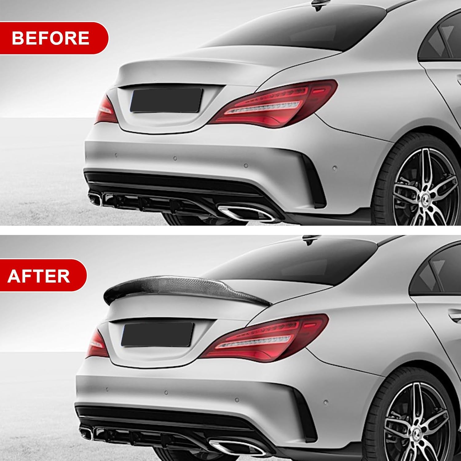 🔥 High-Performance Carbon Fiber Spoiler – Unleash Style & Aerodynamics!Transform the look and performance of your vehicle with this carbon fiber spoiler, expertly crafted to elevate your ride’s aggressive stance while boosting aerodynamic efficiency. Whether you're a performance enthusiast or a style-seeker, this carbon fiber wing is the perfect upgrade for a bold and dynamic rear-end look.✅ Vehicle Compatibility✔ Compatible with 2014–2019 Mercedes-Benz CLA-Class C117✔ Compatible with 2014–2019 Mercedes-Benz CLA 250✔ Compatible with 2014–2019 Mercedes-Benz CLA 45 AMG💎 Premium Carbon Fiber Spoiler ConstructionThis carbon fiber spoiler is made from lightweight, high-strength real carbon fiber for maximum durability and long-lasting performance.The carbon fiber wing features a UV-resistant glossy finish, ensuring it stays fade-free and sharp-looking even in harsh weather conditions.Designed with precision molding technology, this carbon fiber spoiler provides a seamless OEM-style fit with enhanced toughness and impact resistance.🏁 Aerodynamic Design for Performance GainsThe aggressive carbon fiber wing design reduces air resistance and increases downforce at high speeds.Engineered to improve vehicle stability, traction, and handling, this carbon fiber spoiler gives drivers a more confident and controlled ride.By minimizing wind drag, this carbon fiber wing can also help improve fuel efficiency in high-speed driving scenarios.✨ Sporty, Eye-Catching UpgradeAdd an instant style boost with this sleek carbon fiber spoiler, crafted to complement your car's natural body lines.The bold carbon fiber wing design enhances the sporty aesthetics of your vehicle while making it stand out on the road.Perfect for car enthusiasts looking for a refined, race-inspired visual impact.🔧 Easy, Drill-Free Installation1️⃣ Clean the surface to ensure optimal adhesion.2️⃣ Test fit the carbon fiber spoiler to align with the trunk contour.3️⃣ Use the included adhesive tape for a strong, tool-free attachment.4️⃣ Apply pressure for 1–2 minutes to ensure secure bonding.5️⃣ Allow 12–24 hours for the carbon fiber wing to fully adhere before washing or exposing to water.📦 Package Includes✔ 1 x Carbon Fiber Spoiler✔ Automotive-grade double-sided adhesive tape(Installation instructions not included; professional installation is recommended for best results.)💯 Why Choose This Carbon Fiber Spoiler?✔ Crafted from premium carbon fiber for strength and style✔ Sleek, aerodynamic carbon fiber wing design enhances stability✔ Easy installation with no drilling required✔ Long-lasting finish resists fading, cracking, and weather damage✔ Designed for perfect fitment with compatible with Mercedes-Benz models🚀 Upgrade to a Carbon Fiber Wing Today!Don’t just drive — dominate the road with this high-quality carbon fiber spoiler. With cutting-edge aerodynamics and bold design, this carbon fiber wing delivers the perfect fusion of performance and luxury styling.Add the ultimate finishing touch to your vehicle with this must-have carbon fiber spoiler – your rear end has never looked this good!