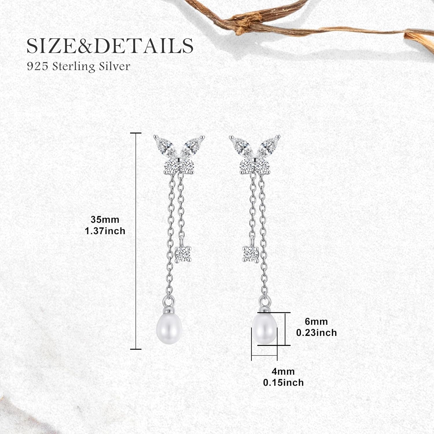 Embrace timeless elegance and natural beauty with our exquisite Pearl Butterfly Earrings. These stunning Pearl Earrings for Women feature a delicately crafted butterfly design, symbolizing transformation and joy, beautifully accented with a luminous freshwater pearl. The graceful combination of the butterfly motif and organic pearl creates a harmonious piece that moves gently with your every motion, adding a touch of refined sophistication to any outfit.
