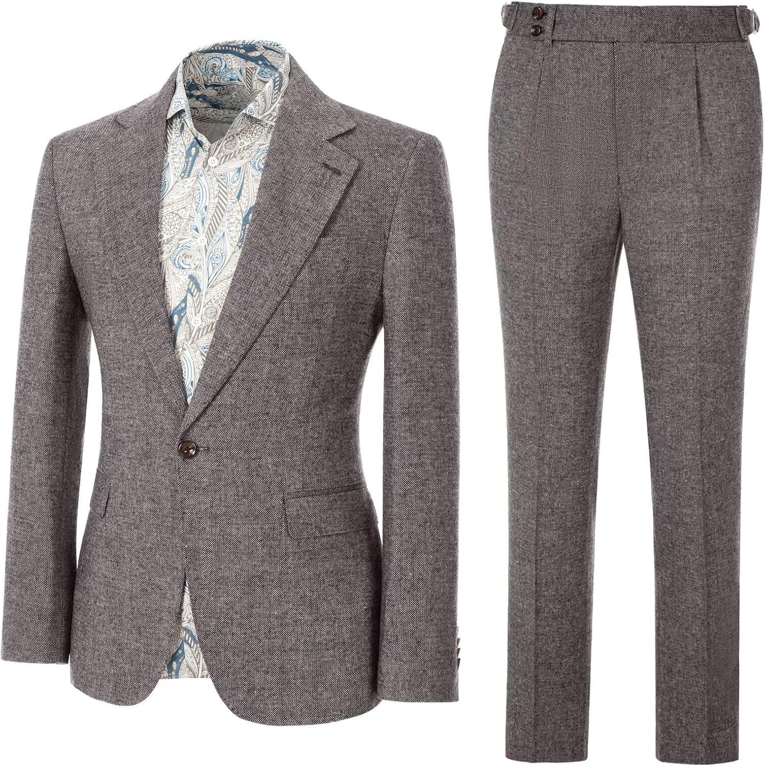 Welcome to shop! Product Information: Type:Men 2 Pieces Suit Set Package include:1*Jacket,1*Pants Notifications Please choose right size according to our size chart Package includes:Jacket + Pants Fabric:Polyester 100% Fit:Slim fit Elasticity:No elasticity Thickness:Moderate Size:X-Small,Small,Medium,Large,X-large,XX-Large,XXX-Large,4X-Large,5X-Large. The Tweed Suits featured with Polyester fabric, gives you more noble disposition. Single-breasted button closure, notched lapel perfectly present your gentility. Please note: 1. Color Difference: Please be aware that colors might look slightly different in person due to camera quality and monitor settings. 2. Commodity Index: it is normal thickness, inelasticity, moderate soft and slim fit. 3. Multi Occasions:Great for both formal and casual occasions -business, presentation,party, events, celebration, prom, banquet, show, dancing, dates, graduation