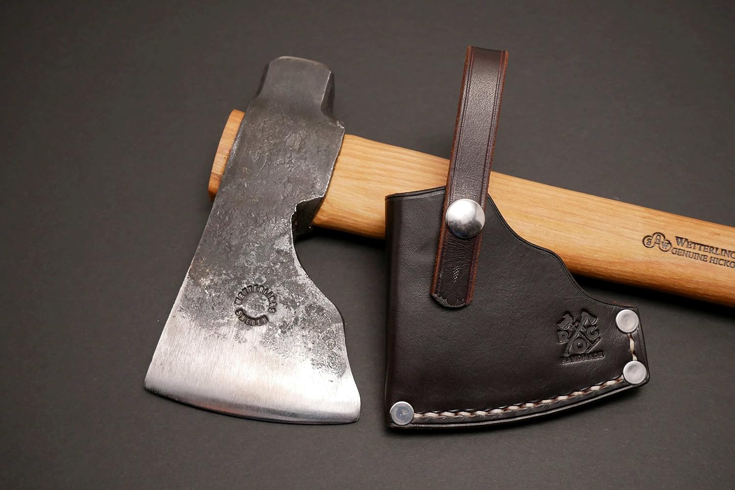 This sheath is designed specifically and is tooled exactly for the Bushman Axe by Les Stroud and Wetterlings. It is made out of full-grain vegetable-tanned cowhide, and treated with Neatsfoot oil. Some variation in the color tone or distribution is normal. This sheath will protect you from the blade and the blade from accidentally dulling if it bumps into anything. The construction of the sheath starts with three pieces of leather: the main body of the sheath, the securing strap and the welt. The main body is folded over a welt that is inserted between the two folded halfs which prevents the blade of the inserted axe from cutting the stitch that is placed to hold the sheath together. The sheath is then glued, hand stitched and rivets are placed at the corners to reinforce the body. The axe head blade, when placed in the sheath, is prevented from touching the rivets because of the welt. The retention strap is then secured with a rivet and a snap is added for easy on/off action. This sheath is built to last, and quality hand crafted in the USA (Spokane, Washington). Finish to the edges of the leather is applied for aesthetic appeal. Watch how we make a similar sheath on YouTube: https://youtu.be/reL6CQi18xk