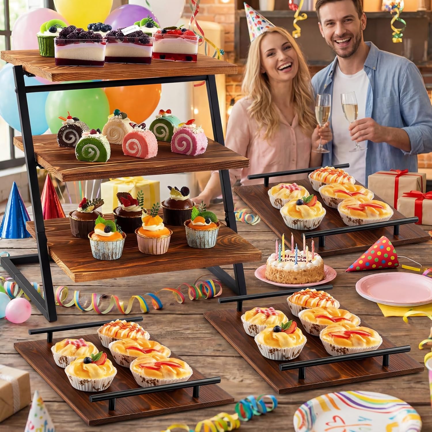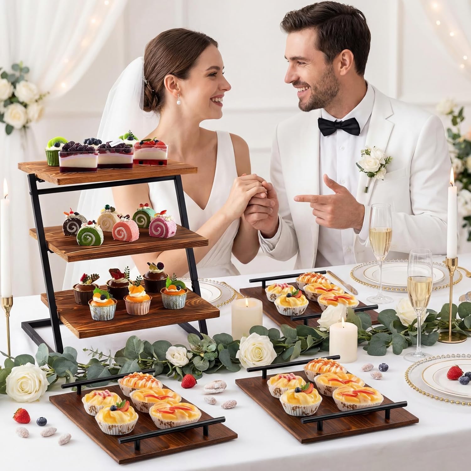 Features: Beautiful appearance: The simple and classic appearance, rustic pine texture, and ferrous metal brackets take into account both practicality and beauty, meeting the needs of foods such as display desserts. Easy transportation: Our cupcake stands have convenient metal handles that can be easily transported from one place to another. It can easily double as a display stand for muffins, pastries or small appetizers, and our dessert table is a great addition to any event, offering endless possibilities for foodie fun. Specifications: Material: wooden, mental Color: classic colors Size: 3-layer tray: approximately 13.78 x 11.81 inches/ 35 x 30 cm Single-layer tray: approx. 13.78 x 11.02 inches/ 35 x 28 cm Package includes: 1 X 3-layer Cupcake stand 3 x Single-layer Cupcake tray Notes: Manual measurement, please allow slight errors on size. The color may exist a slight difference due to different screen displays
