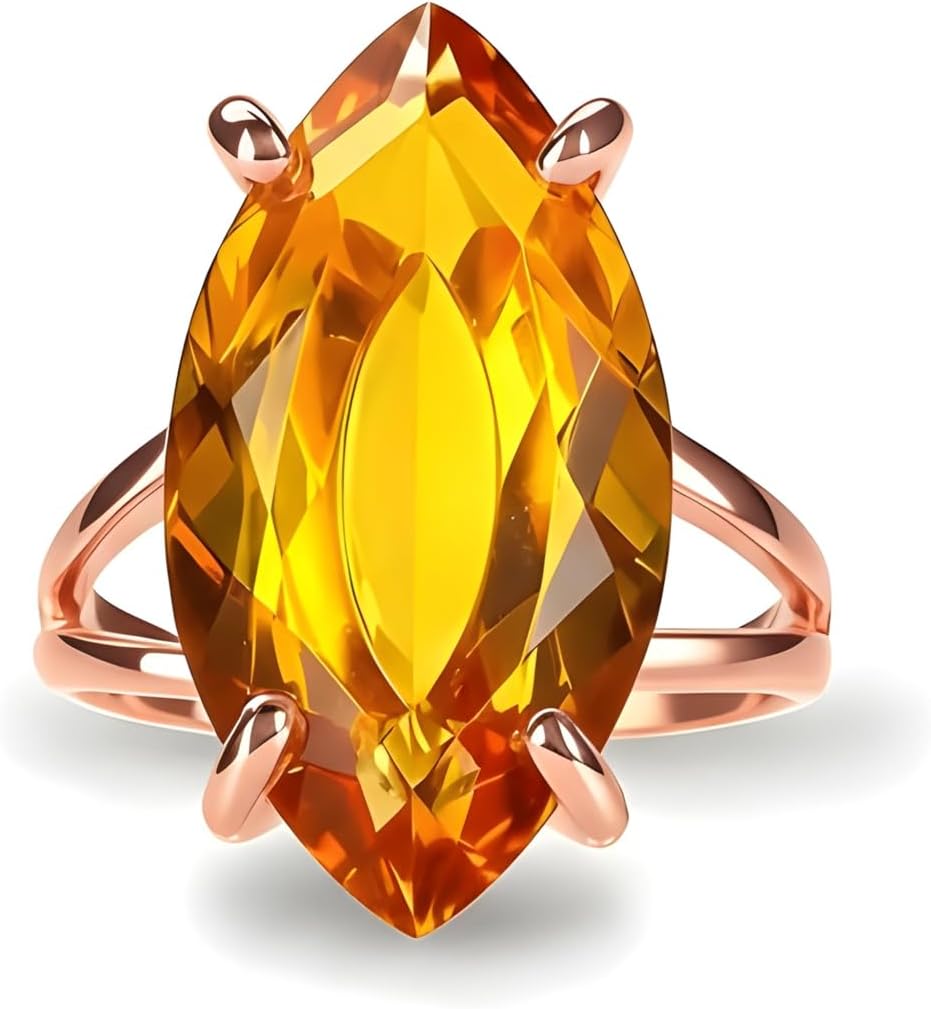 This rose gold citrine ring features a faceted marquise-cut gemstone that glows in warm golden-orange hues. Known as the November birthstone, citrine symbolizes energy, healing, and abundance. The polished rose gold band adds a touch of luxury, while the elongated gemstone shape makes a stunning statement. Handcrafted with care, this gemstone ring is perfect for women seeking meaningful jewelry or an elegant gift.