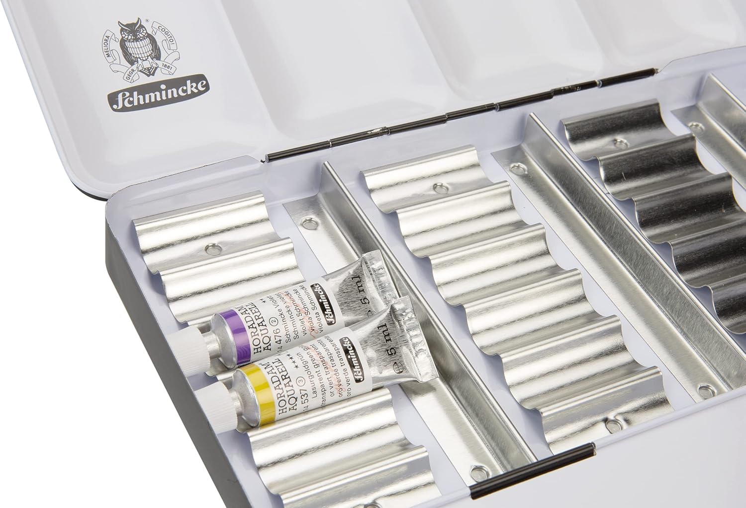 The Schmincke Empty Metal Case for 18 5ml Tubes of Horadam Aquarell Paint enables you to safely store and protect 18 5ml tubes of Schmincke Horadam Aquarell paint. Create your own color palette and customize your paint set. Durable metal construction is long lasting. Made in Germany.