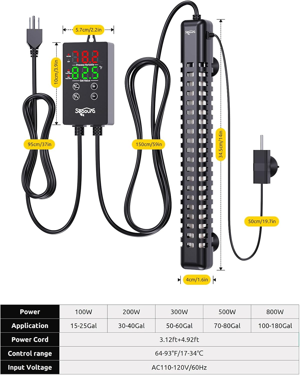 SEAOURA Submersible Fish Tank Heater, 500 Watt Aquarium Heaters and Adjustable 3W Fish Tank Air Bubbler Aquarium Aerator Air Pump for 65-75 Gallon