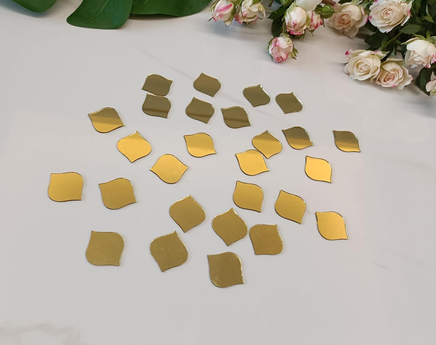 Real Glass Mirror Mosaic, Arabesque Mosaic Shape Material : Real Glass Mirror Material Color :Silver Mirror Shape:3’’ Wave Glass Mirror Title,1.5MM Thickness Quantity :100PCS one bag Good Quality With smooth edges & a clear look. Wrapped in bubble wrap for good protection Mirror mosaic can decorate the walls, ceiling and interior decorations, also can use for embellishing skirts, dresses, tops, bags ect to have unified modern look; Meanwhile Mini round mosaic mirror uses for arts and crafts pieces, Add to picture frames, jewelry boxes, walls, mirrors, doors, lockers. Put together a DIY reflective mirror disco ball. Also great for kids crafts, school art projects, holiday ornaments and seasonal decor. Please note: This product is made of glass. Please wear gloves to avoid scratching your fingers. Not suitable for children to play with. Please allow a little error on the size due to manual measurement.