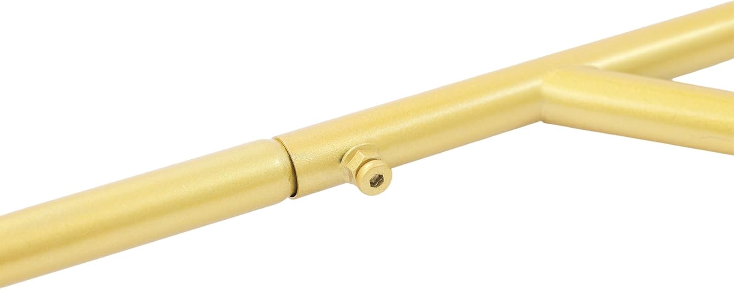 ApplicationIt is suitable for laundry rooms, balconies, bedrooms, entrances, living rooms, and clothing retail shops. It can be used to store clothes, scarves, trousers, ties, bags, hats, etc. SpecificationColor: GoldStyle: ModernMaterial: Steel PipeProcess: High-temperature Baking PaintMount Type: Floor StandingAssembly Required: YesLoad Capacity: About 25kg/55.12 lbsTop Length: 65cm/25.59inBase Side Length: 50cm/19.69inHanging Rod Height: 145cm/57.09inTotal Product Size(L*H): 75*160cm/29.53*62.99inPackage Size: 32*9*74.5cm/12.6*3.54*29.33inGross Weight: 3.2kg/7.05 lbsNet Weight: 3.04kg/6.7 lbsPackage Included1* Corner Coat Rack1* English DiagramDetails Support Feet: Round support feet effectively prevent slipping and make the product more stable.Round Corners: They not only enhance the aesthetics of the product but also improve safety during installation and use. Notes1. Please check the size carefully before ordering.2. Please use the product within its load-bearing capacity.3. Please note that clothes are not included in this product.4. Please allow the slight color difference caused by the shooting light and 1-3 cm error due to manual measurement, and make sure you do not mind before ordering.