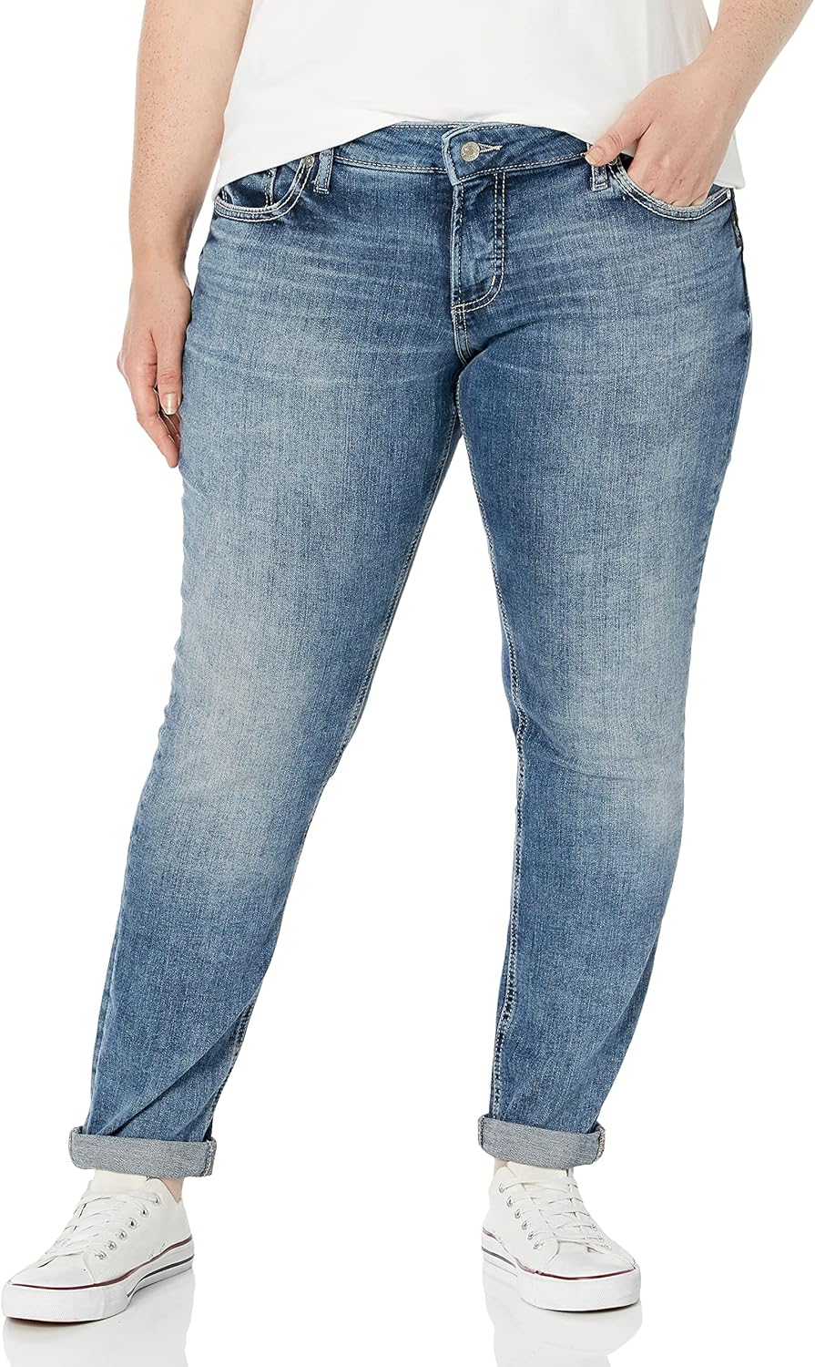 | Style Name | Plus Size Girlfriend Mid Rise Slim Leg Jeans - Legacy |