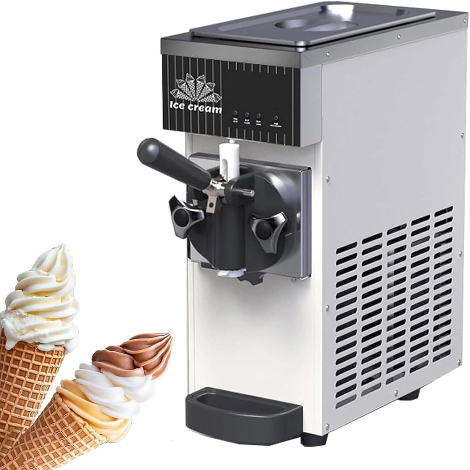 The Soft Serve Ice Cream Maker offers fast freezing (50-65 servings/hour), with a Efficient 450W Motor, cooling, and an LCD panel for easy adjustment. Made of stainless steel, it’s durable, efficient, and produces smooth ice cream with dual High Overrun Technology.➤Main Features:❄ Produces 50-65 cones (80-90g each) per hour for continuous service.❄ Touch screen allows easy temperature and hardness adjustments.❄ One-touch cleaning removes ice debris for quick maintenance.❄ Perfect for soft serve ice cream, sorbet, yogurt, and other desserts.❄ Made with food-grade stainless steel for safety and durability.➤Product Specifications:Product Name: Single Flavor Commercial Ice Cream MachineMaterial: Stainless steelPower: 450 WVoltage: 110 V/ 230 VHopper Capacity: 2.5 LFreezing Cylinder Capacity: 1 LOutput: 4-5 kg/hContinuous Dispensing Rate: 1 shots/minColor: Cream White, Orange, Gray, PurpleProduct Size: 20*40*51 cm/ 7.9*15.7*20.1 inWeight: 20 kg➤Package List:Ice Cream Machine *1➤Note:The machine will inevitably vibrate during transportation. It is recommended to use it after 24 hours.The temperature of the ice cream ingredients should be between 7°C and -40°C. Exceeding this range will damage the machine.Dust on the vents must be cleaned regularly to avoid affecting cooling performance.