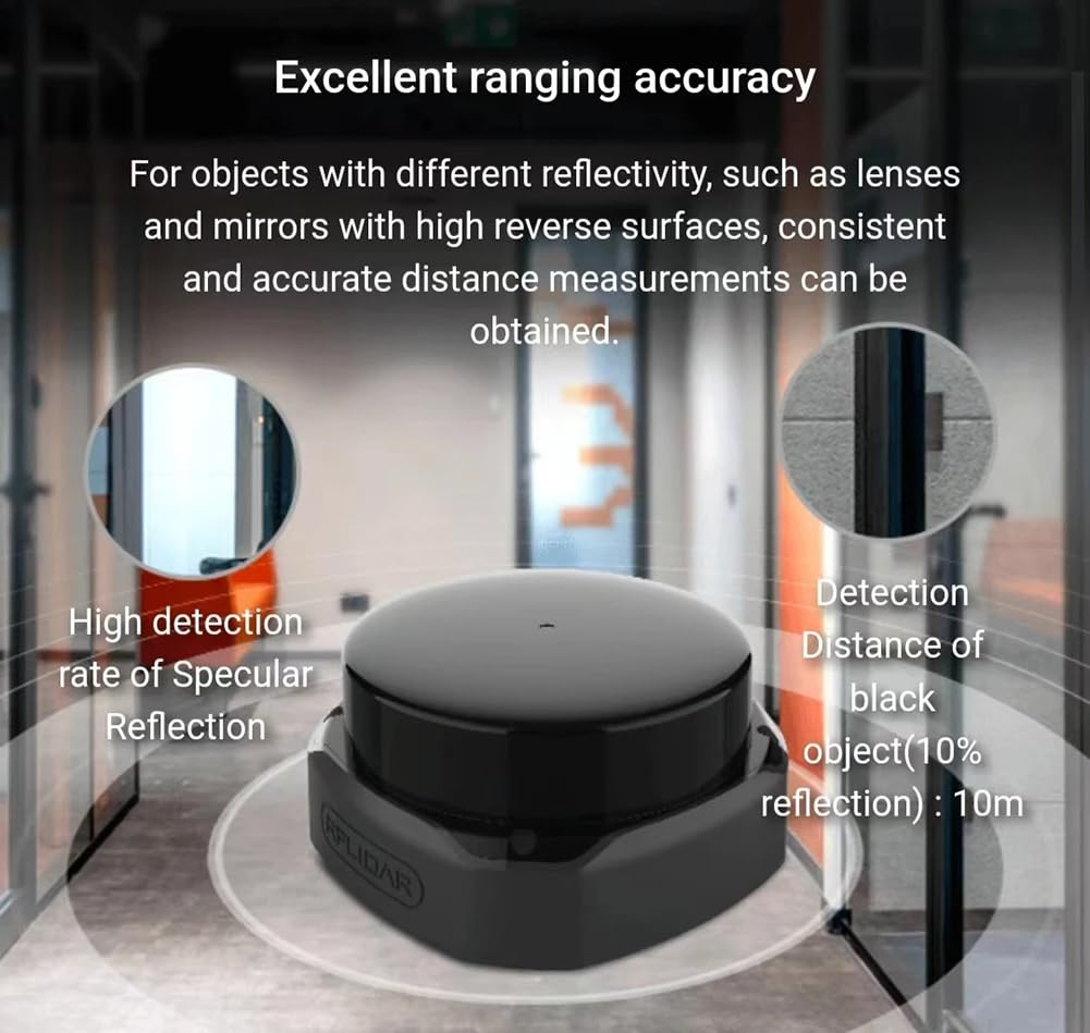 The RPLIDAR S2L is a next-generation low-cost 360 degree 2D laser scanner (LIDAR) solution developed by SLAMTEC. It can take up to 32000 samples of laser ranging per second with high rotation speed. Equipped with contactless power and signal transmission technology, it breaks the life limitation of traditional LIDAR systems to work stably for a long time. The RPLIDAR S2L is a 2D laser scanner, which can perform a 2D 360-degree scan within a 18-meter range and produce a 2D point cloud map of the space where it is located. The generated 2D point cloud data can be used in mapping, robot localization, robot navigation, and object/environment modeling. Compared with other RPLIDAR series, RPLIDAR S2L has a more stable performance when detecting objects in long distances, objects in white or black alternatively, and objects under direct sunlight, which is ideal for map building in the outdoor or indoor environment within a 18-meter ranging radius. Therefore, it can be widely applied in many consumer-oriented business scenarios. The typical scanning frequency of RPLIDAR S2L is 10Hz (600rpm). With the 10Hz scanning frequency, the sample rate is 32kHz, and the angular resolution is 0.12°.