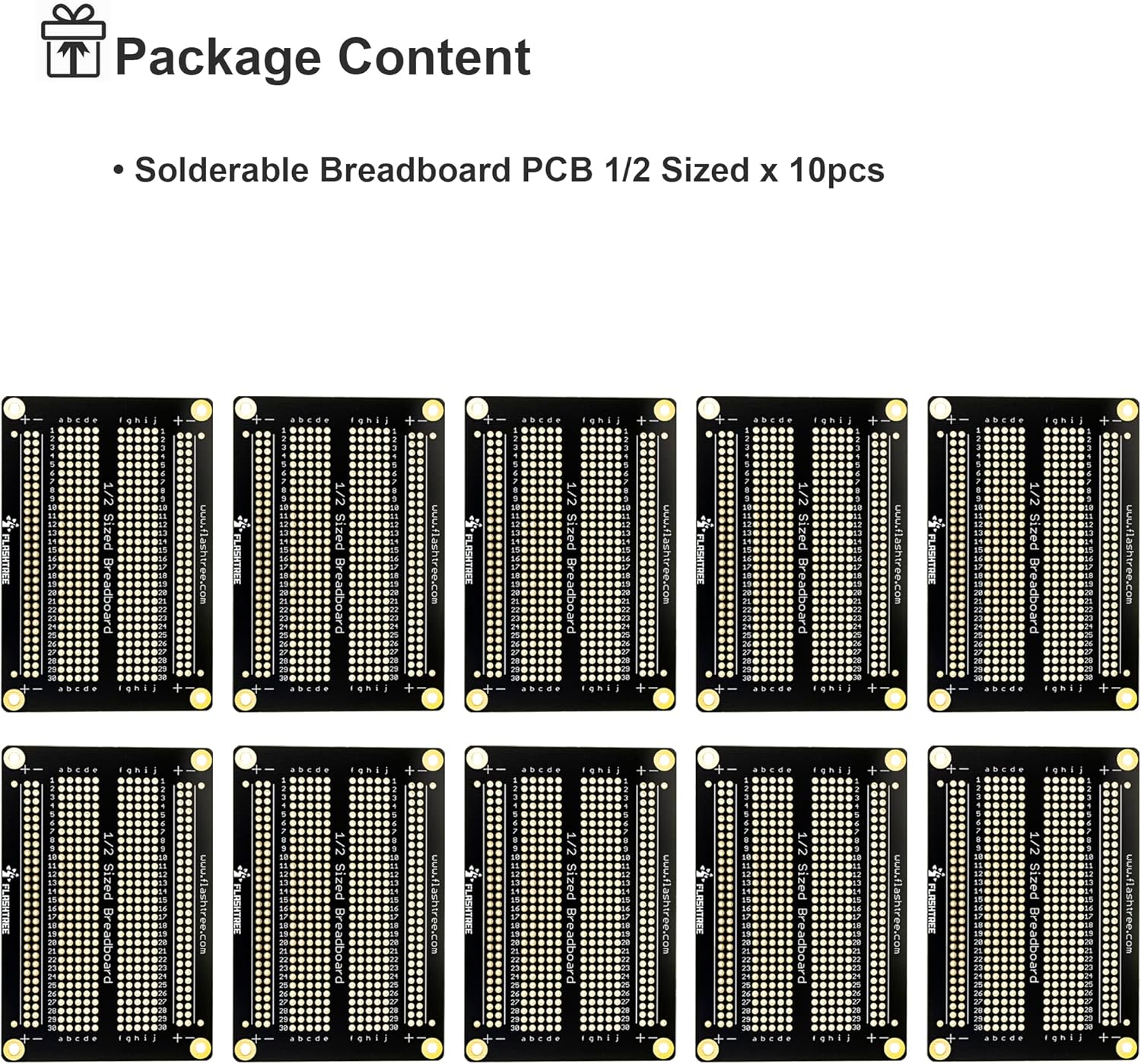 Package Content: 10pcs x 1/2 Size Solder-able Breadboard PCB Board