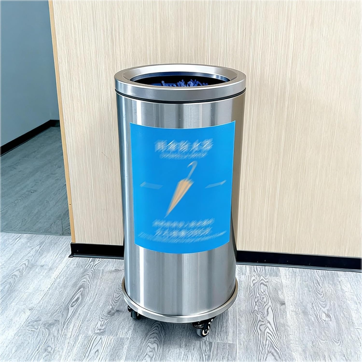 Keep your floors dry and your entryway tidy with this sleek, stainless steel umbrella dryer stand! With its absorbent 3D cotton lining, removable water tray, and lockable casters, it's the perfect solution for busy lobbies, offices, and home entrances alike! Features: 1. Effectively contains water drips to keep floors dry, clean and safe from slipping. 2. Large‑capacity drying rack with stable structure for daily high‑traffic use. 3. Easy to move and fix with flexible wheels, ideal for entrances, lobbies and offices. 4. Combines practical drying function with elegant decorative storage in one unit. 5. Reduces cleaning work and maintenance costs while improving space safety and appearance. Specifications: Product Name: Umbrella Drying Rack Material: Stainless Steel Drainage Capacity: 2.2L Product Dimensions: Diameter 395mm, Height 825mm Package Dimensions: 45×45×87cm Net Weight: 9kg Gross Weight: 12kg Package List: 1 × Umbrella Drying Rack Notes: 1. Please allow the slight color difference caused by the shooting light and 1-3cm error due to manual measurement. 2. If you have any questions please contact me and I will reply you within 24 hours.