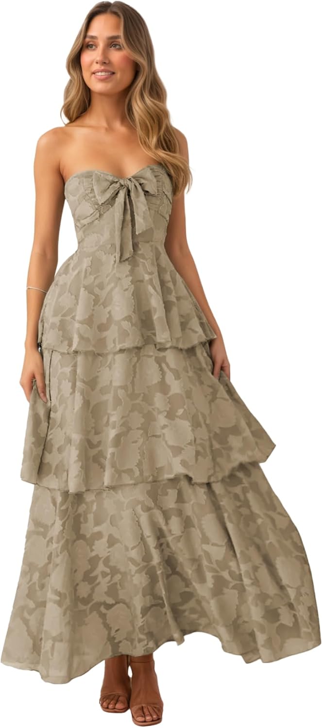 | Embellishment Feature | pleated, sleeveless, strapless, tea length, tiered layed |