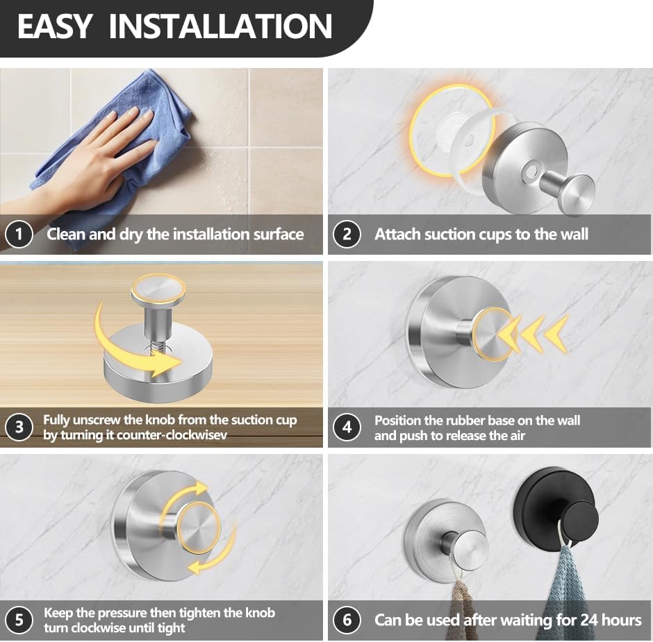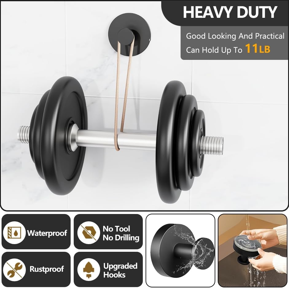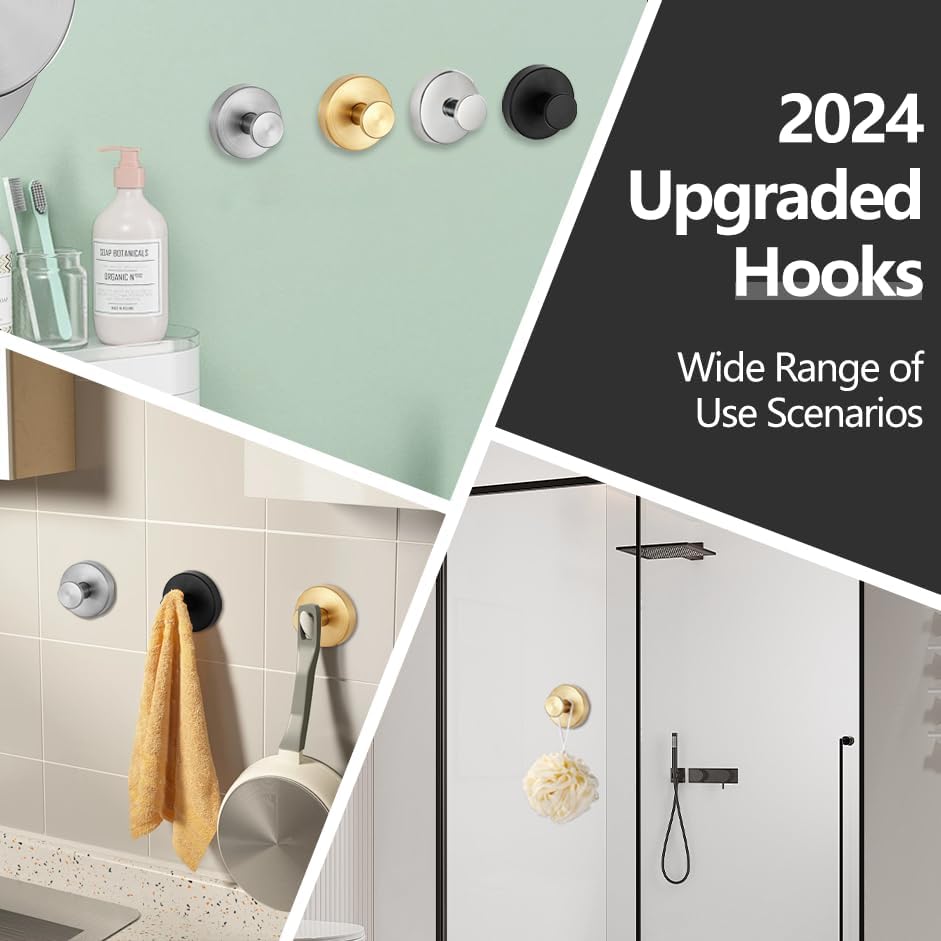 Suction Cup Hooks for Shower,Hanging Towels, Robe, Loofah, Kitchen, No-Drill Hooks for Bathroom Wall, Stainless Steel Waterproof Suction Cup Hooks for Glass,Mirror(Brush*2)