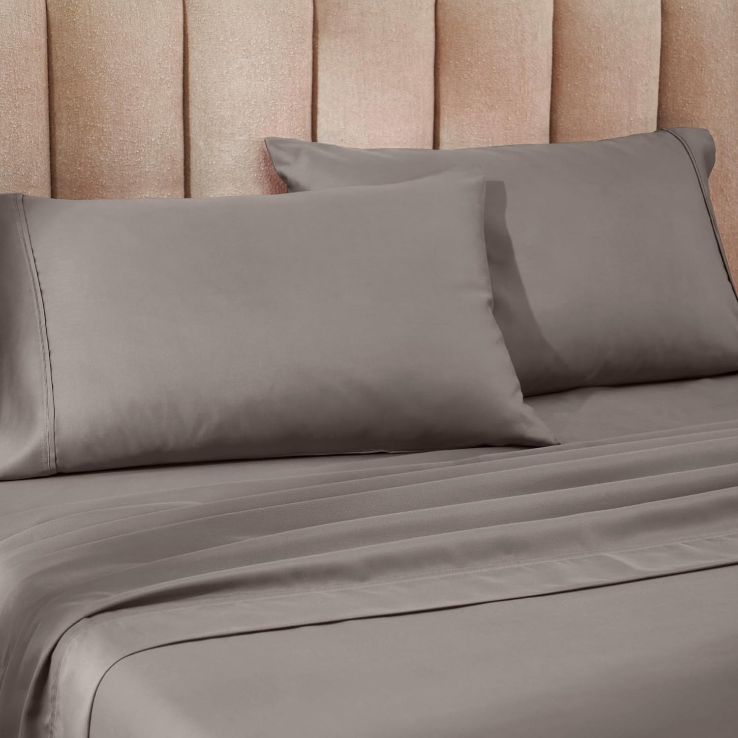 Elevate your bedroom with the 1200 Thread Count Cotton Blend Sheet Set by Superior. Crafted from a high-quality cotton blend, these premium sheets offer a sumptuously soft and breathable sleep experience. The classic solid color and elegant two-pintuck hem stitch detail complement any decor, while the sateen weave finish creates a luminous sheen and silky-smooth feel. Lightweight and durable, this set includes a flat sheet, fitted sheet, and two pillowcases for a complete bedroom transformation.