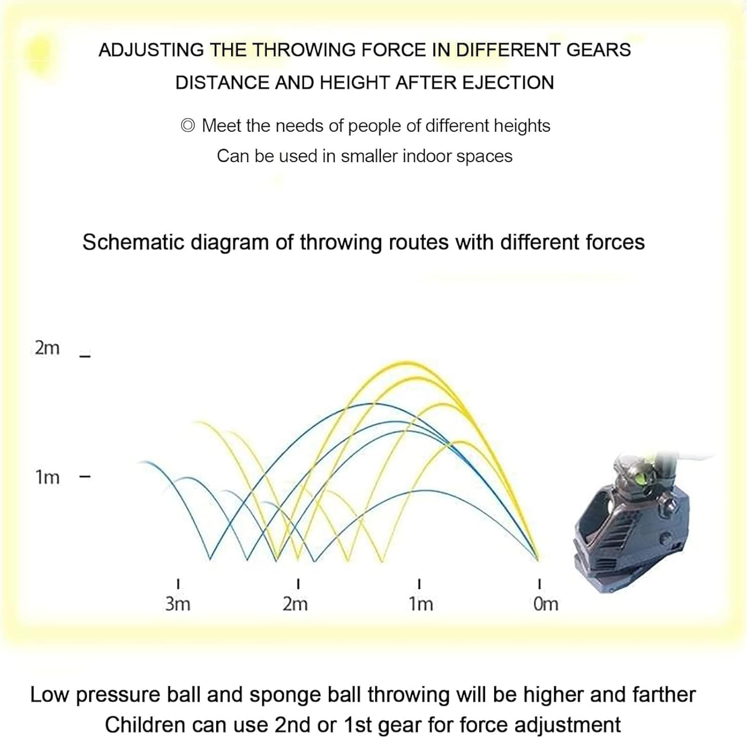 Features: The bottom can be rotated to change the hitting point 3 ball frequency adjustable, respectively 4 seconds, 5 seconds, 6 seconds 2 high-end positions adjustable Specification: Product name: tennis ball machine Size: 30*13*44cm material: plastic Weight: 1.3kg Power supply: 1.5V D-type battery (not included) Note: Low pressure ball and sponge ball will throw the ball higher and farther Children can use 2 gears or 1 gear to adjust the intensity