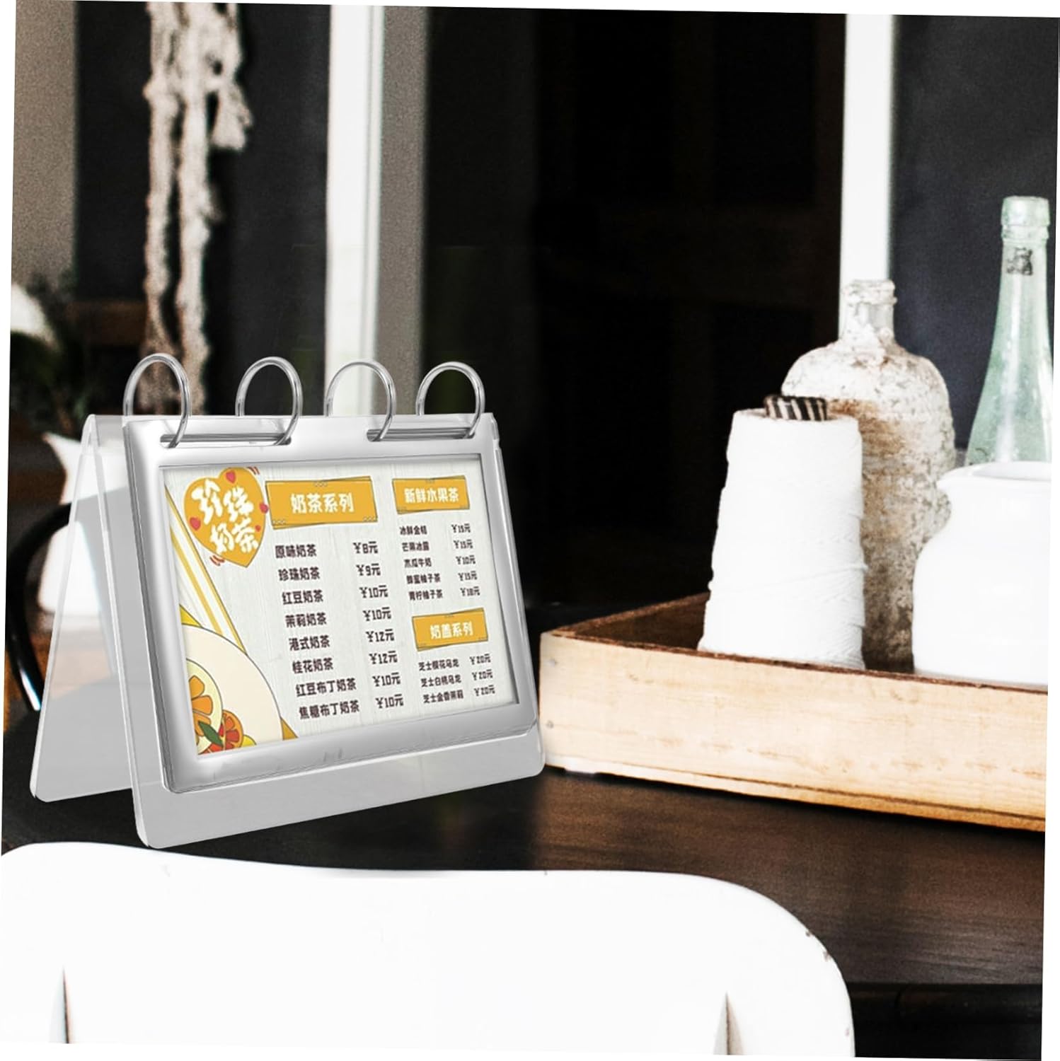 Package Include 4 x Menu Holder Characteristics -Color:Transparent poster stand -Size(inside page):17.50X12.80X0.01cm/6.88X5.03X0.00in sign holders -Size(all):19.50X15.00X8.50cm/7.66X5.89X3.34in poster holder -Material:Acrylic flip photo album - Suitable for retail stores, supermarkets, multiple shops, exhibitions or for other advertising clear stand for display. - With a stable base, the tabletop Menu holder is easy to stand and display the information sign holder with base. - Firmly holds your Menu in place, prevents it from falling out Smooth surface, safe to touch and do not hurt your hands business card organizer. - Made with acrylic materials, which can display posters very clearly, bringing you more convenience flip photo book. - Lightweight design, no burden to carry, easy to use and easy to operate paper holder.Goods Informationdesktop display stand It can greatly meet your practical requirement, can be used for menu or tag display.paper holder If you are looking for professional Menu holder, you should take a look at this item.sign holder with base This desktop menu storage rack is made of acrylic material, which enjoys strong durability