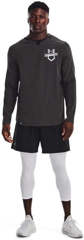 Introducing the Under Armour Men's Hooded Cage Jacket, engineered for optimal comfort and performance. This stylish jacket is specially designed for men who prioritize both functionality and fashion. Constructed from ultra-lightweight, durable, stretch-woven fabric, this jacket offers unparalleled freedom of movement – perfect for baseball practice, warm-ups, or any outdoor activity. One of the standout features of this jacket is the UA Storm technology. This advanced technology gives the jacket a water-repellent finish while ensuring breathability, so you stay dry without feeling stifled. The jacket uses a fluorine-free water repellent treatment, further enhancing its resistance to water without compromising on environmental considerations. The Men's Hooded Cage Jacket also boasts dual-layer ColdGear shoulder and sleeve panels, complete with an ultra-warm, brushed interior. This feature ensures that you stay warm even in cooler weather, making this jacket a versatile addition to your wardrobe. The 4-way stretch material that this jacket is made of allows for better movement in every direction, making it a reliable companion for your active lifestyle. It also features mesh underarm panels for strategic ventilation, keeping you cool when the action heats up. Designed with a low-profile collar, this jacket eliminates distractions, allowing you to focus on your performance. Moreover, it comes with a unique rip stitch convertible sleeve design, which means you can cut at the elbow seam for a short sleeve option, adding to its versatility. The jacket is cut in a loose style for a fuller and more comfortable fit. It is finished with open hand pockets and a shaped hem, adding to its practicality and style quotient. Available in a variety of colors, this jacket can complement any outfit, making it a perfect choice for the active man