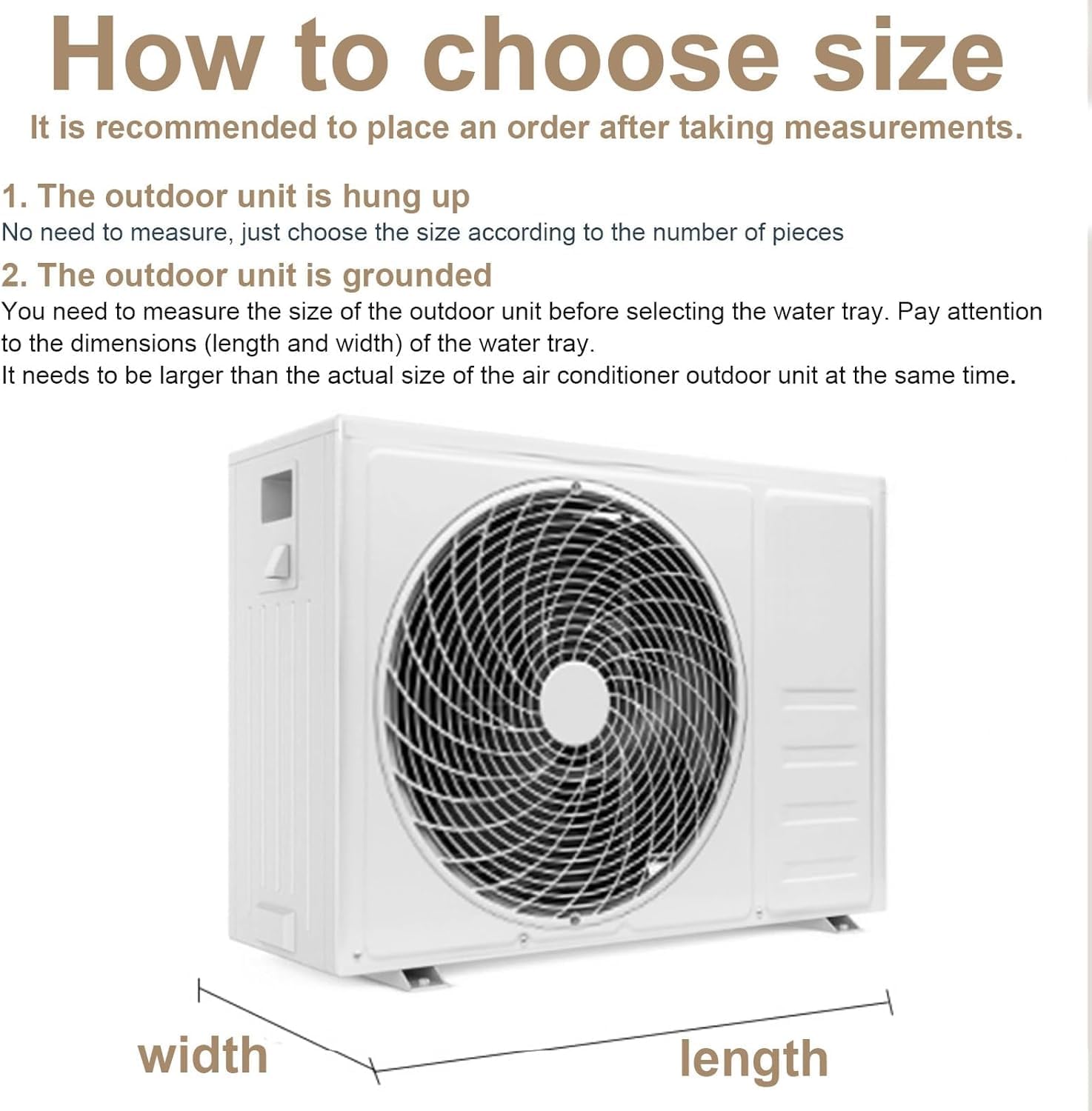 This innovative drain pan effectively captures condensate from air conditioning units, promoting a clean and safe space by preventing leaks and spills. Versatile Compatibility: Suitable for both indoor and outdoor air conditioning systems, this drain pan is compatible with window AC units, HVAC systems, and evaporator coils. By enhancing system efficiency, it helps prolong the life of your equipment, making it an essential component of any air conditioning setup.Durable Construction: Made from high-quality stainless steel, our condensate drain pan is built to withstand rigorous conditions while effectively managing water leakage from outdoor units. Available Sizes: Choose from a variety of sizes to meet your needs: 1-2P: 84x38cm (33x15in), 3P: 92x44cm (36x17in), 5P: 100x47cm (39x18in). Size Selection Tips: For wall-mounted units, select based on the unit’s P rating. For floor-standing units, measure the outdoor unit and select a drain tray that exceeds both length and width for optimal functionality.Universal Application: This drain tray is perfect for both residential and commercial settings, efficiently collecting and discharging condensate to boost your air conditioning system's performance and longevity. With easy installation and essential accessories included, such as a drain hose and fixing clips, enhancing your air conditioning setup has never been simpler.