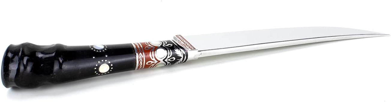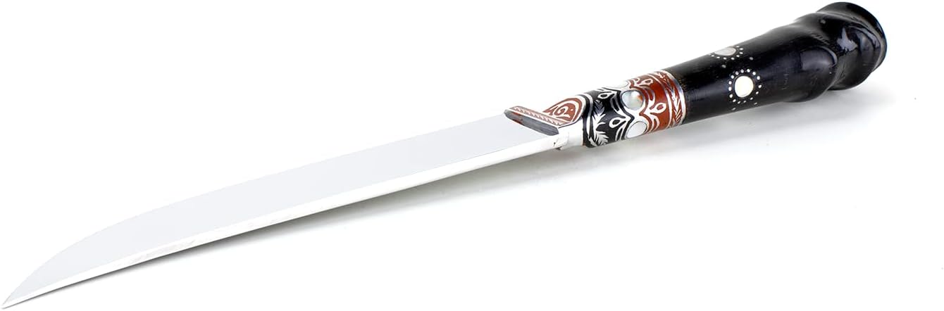 This beautiful handmade kitchen knife from Uzbekistan is perfect for any chef or food lover. The knife is made with high-quality stainless steel and is hand-forged by skilled artisans in Uzbekistan. The blade is sharp and durable, making it ideal for slicing, dicing, and chopping a variety of foods. The knife has a comfortable ergonomic handle that is designed for precision and control. The knife is perfect for both professional chefs and home cooks who want to enjoy the finest quality kitchen knives.