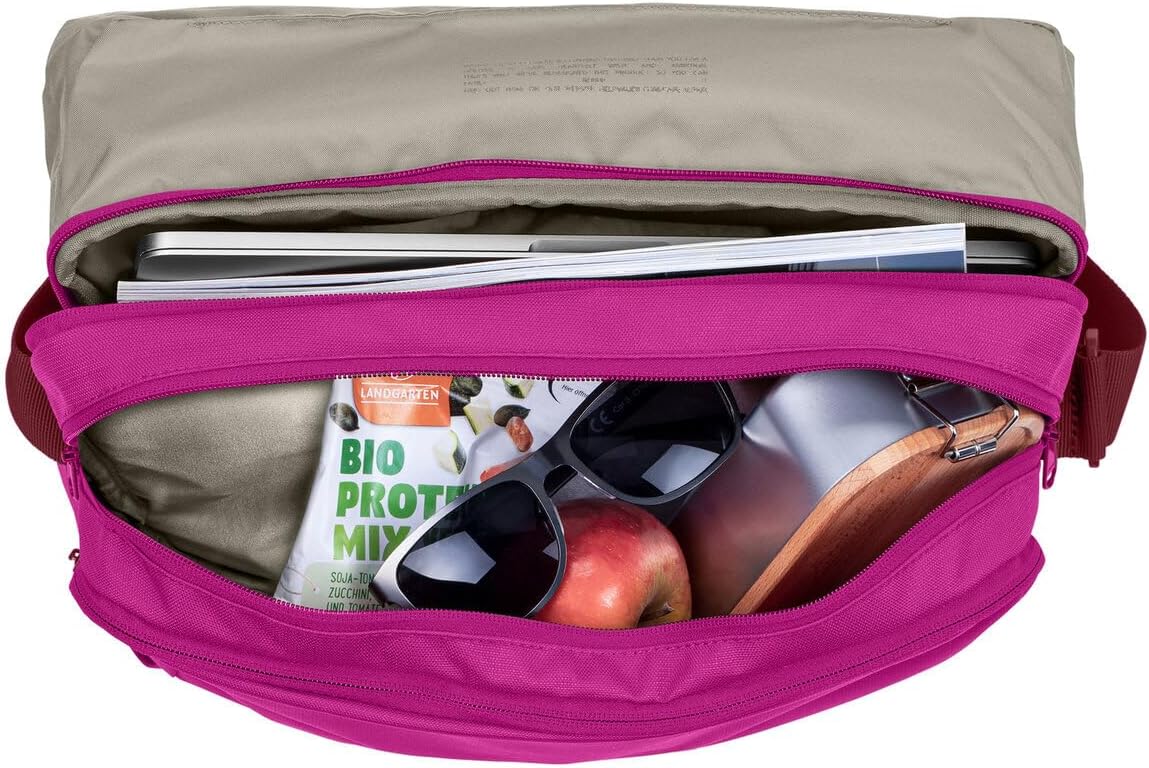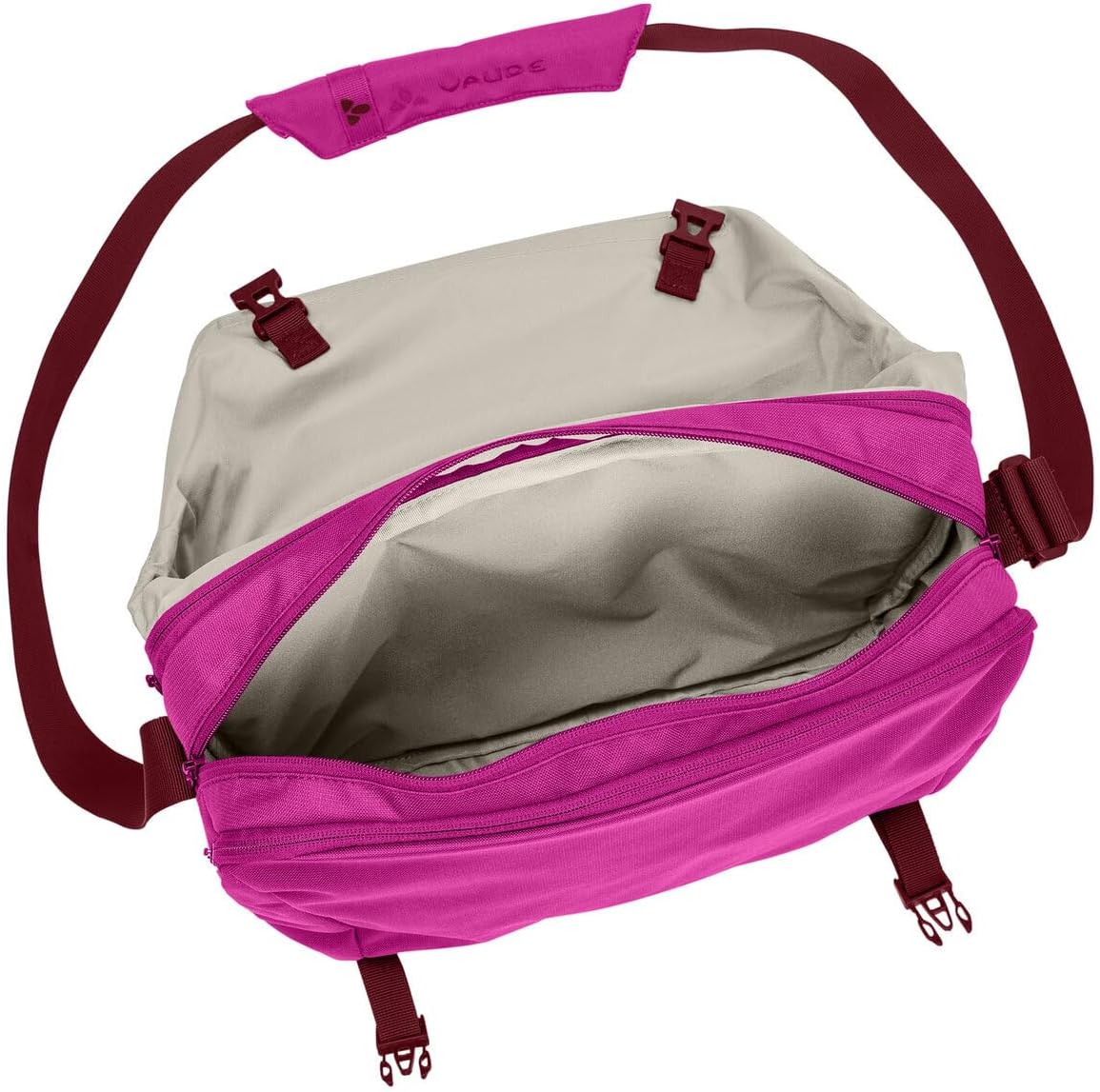 Our proven VAUDE classic is now even more environmentally friendly. The Rom M shoulder bag with a spacious 13.5 litre volume organises all the important utensils for everyday city life - with a clear inner division and enough space for drinking bottle or small shopping. The padded base reduces unwanted bumps and the internal padded notebook compartment (up to 13.3") offers its owner additional protection for their belongings. An organiser in the outer compartment with scratch-proof, softly lined extra compartment for smartphone or sunglasses are other useful details of the Rom M shoulder bag. A soft shoulder pad makes even a fully loaded bag comfortable to wear. The robust, recycled material has been treated with Eco Finish environmentally friendly water-repellent without fluorocarbons (PFCs) and thus withstands a short rain shower in an environmentally friendly way. Our verdict: all roads lead to the Rom M shoulder bag! The VAUDE Green Shape label stands for an environmentally friendly, functional product made from bluesign certified, sustainable materials.