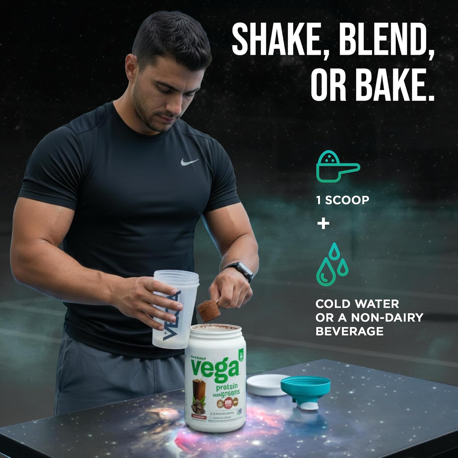 Green feels good. Add extra greens and protein to your daily routine without skipping a beat with Vega Protein and Greens vegan protein powder. Each scoop is stacked with kale, alfalfa, broccoli and spinach, plus 20g of plant-based protein. Start your day with plants by shaking up one serving of Vega Protein and Greens with 1 ½ cups of ice water or blend a scoop into your favorite smoothie recipe for a smooth, subtly sweet taste. Try Vega Protein & Greens in delicious Vanilla, Chocolate, Berry, Salted Caramel, Coconut Almond, Tropical or Plain Unsweetened. Vega Protein and Greens is non-GMO Project Verified, Vegan certified, B Corp Certified, and gluten-free with no added sugar, artificial flavours, or preservatives.