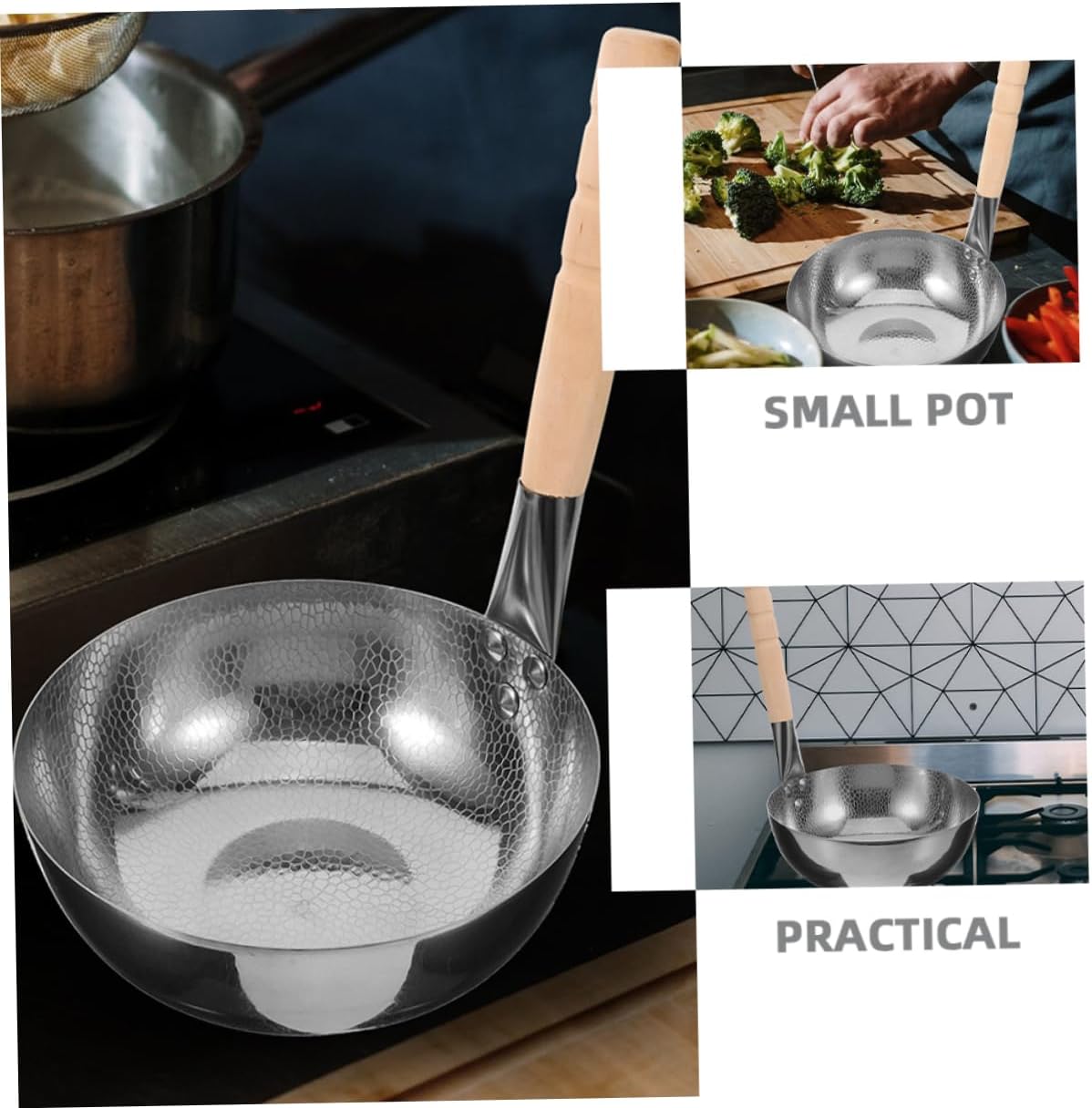 Package Include 1 x Cooking Pot Characteristics - Size: 30.50X24.00X24.00cm/11.99X9.43X9.43in noodles - Material: Stainless steel, wood instant noodles pot - Capacity: 2L noodle pot -Product Info:Hammered rice noodle pot - Color: Silver stainless steel pasta pot - This small pot is versatile for cooking noodles, soups, and porridge with ease, very convenient stainless steel pan. - Widely applied in home, dorm, food store, canteen, restaurant and other places in need pots stainless steel. - Stylish appearance of this small cooking pot can add a touch of elegance to your kitchen cookware instant noodle hot pot. - The pot is made of stainless steel, wood materials, which is safe and convenient for cooking stainless steel ramen pot. - Under high temperature, it will not soften and deform. Stable material, easy to clean ramen noodle cooker.Goods Informationsoup pots The thickened construction that heat is evenly distributed.small soup pot Whether you're boiling noodles, making soup, or cooking porridge, this pot can handle.noodle This multi-purpose cooking pot is designed to meet all your cooking needs