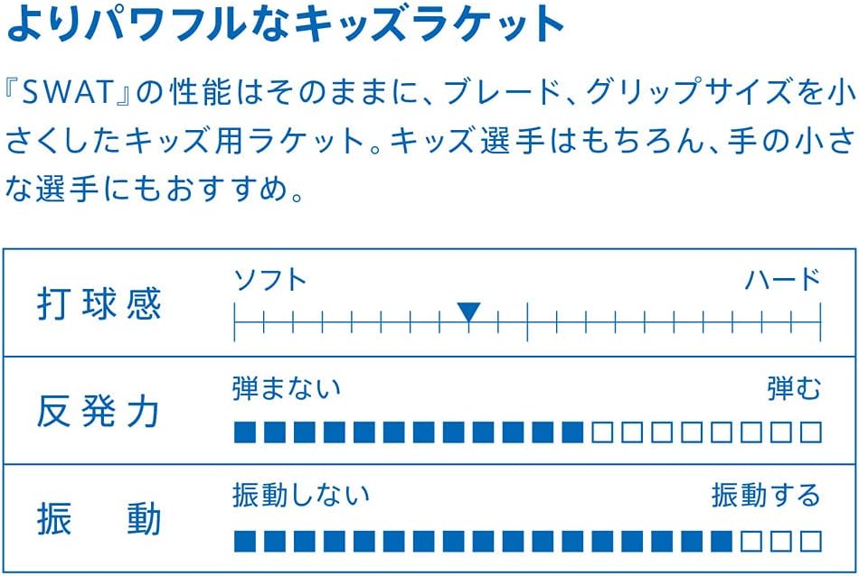 Kids racquet with reduced blade and grip size while maintaining the performance of SWAT Recommended for kids and small players as well.