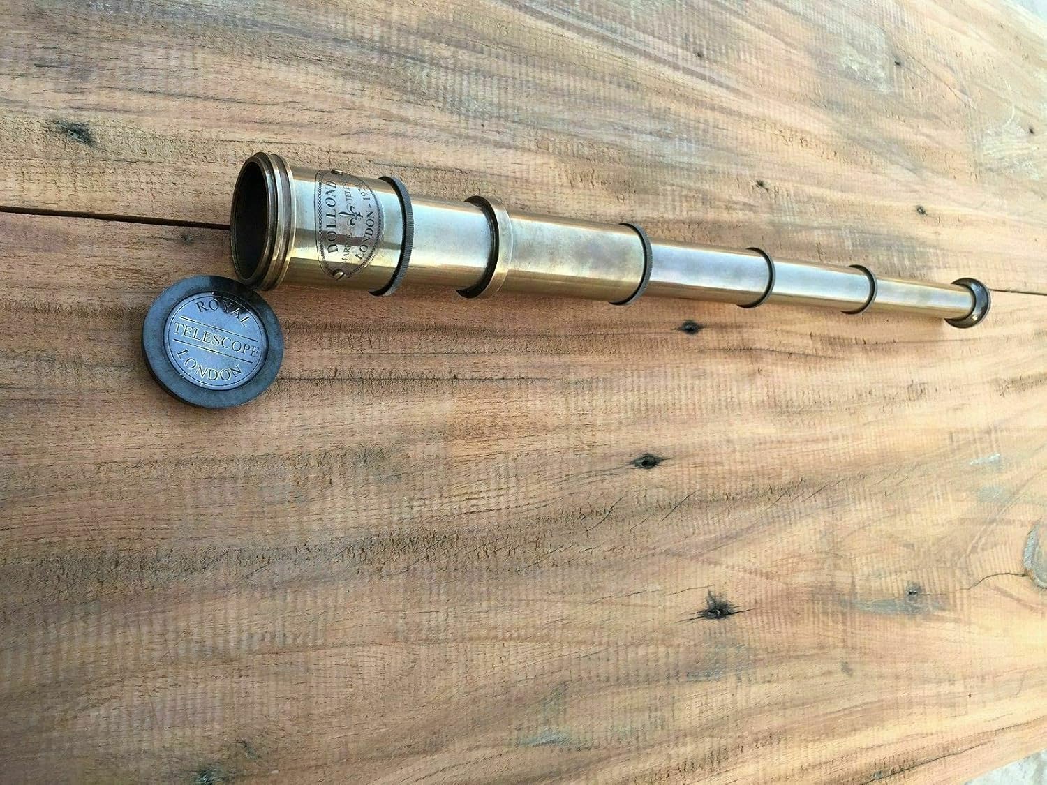 Material : Brass & Wood Magnification : 10 x Approx Telescope Finish : Antique Total Weight : .630 kg Approx Tripod Finish : Antique Finish With Wooden Polish