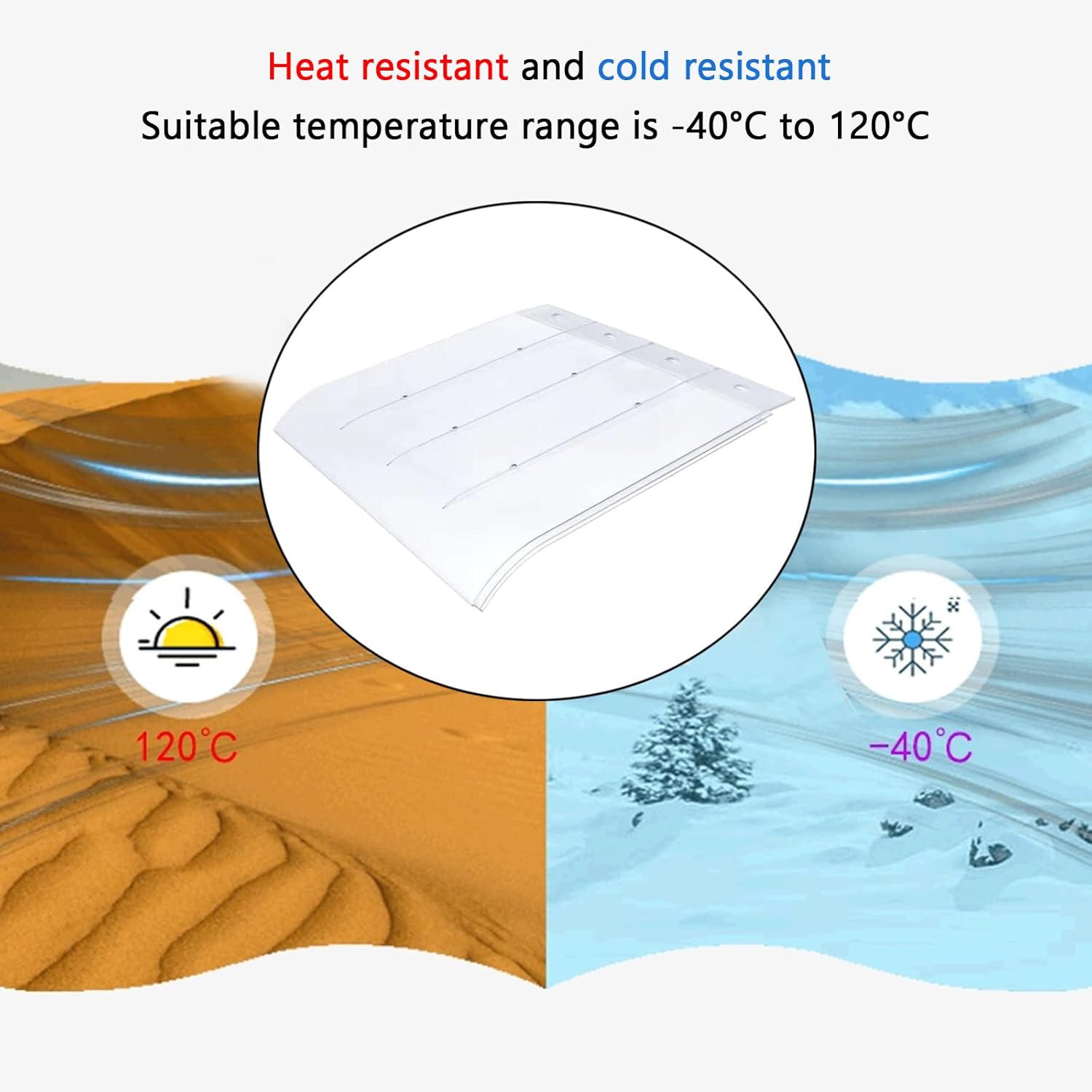 Our awnings won't let you down! You can install it at your front door, back door, balcony, office window, porch, entrance, patio, garden, garage, bar, restaurant, swimming pool, etc. Used to protect from rain, wind, and sun, and to prevent accidental impacts and falling objects from high altitudes. And it’s so clear that you can enjoy an unobstructed view of the outdoors while letting in a steady stream of pure light. There is a layer of UV coating on the surface of the ceiling, which can block 99% of ultraviolet and infrared rays, truly protecting your outdoor appliances, air conditioner units and cars, and slowing down the aging process. The roof will not turn yellow even after many years. Curved arch design effectively reduces rain and snow accumulation. No maintenance required, bringing convenience to people! The bracket is bright in color, smooth and tidy, waterproof and not easy to rust. The maximum load of a single bracket is 150 kg/331 lbs. Great value for money, lightweight and half the weight of glass. The structure is simple and easy to install, making it very suitable for home use. **product information: Name: Outdoor door and window awning Style: modern and simple Dimensions: width x length (can be customized) Color: transparent panel + white bracket Panel material: polycarbonate Panel thickness: 2.5mm/0.1in Maximum load on top plate: 200kg/441lbs Bracket material: aluminum alloy Applicable fixed wall types: wooden walls, cement walls, iron walls, ceramic tile walls, marble walls, solid walls *Scope of supply: 1x Awning (panel quantity 1, 2, 3, 4, 5, 6) 1x complete installation accessories (brackets, front aluminum strips, rear aluminum strips, sealing strips, expansion bolts, screws) **If you have any questions, please send an email to contact us, we are experienced and will solve your pr