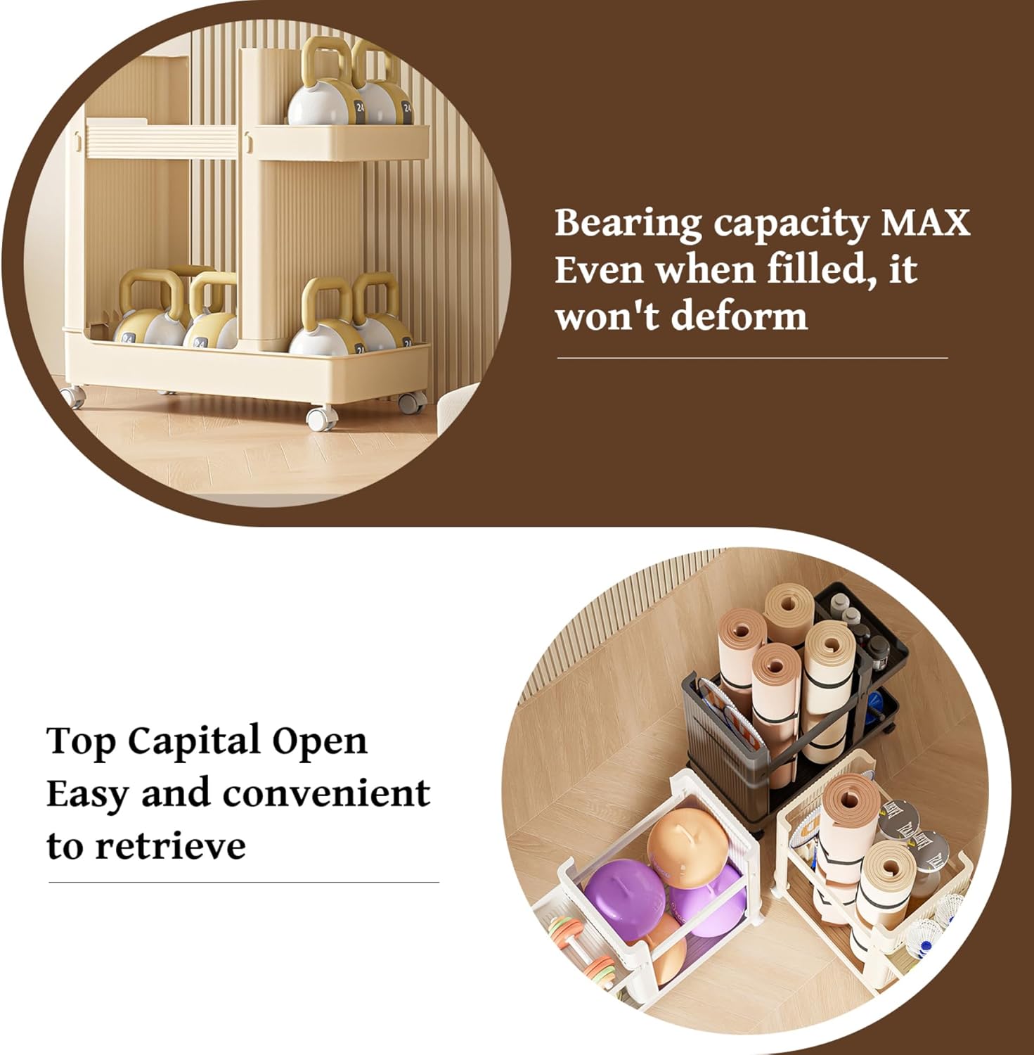 Description: Transform your home gym into an organized and efficient workout space with the Home Gym Storage 2 Tiers Strong Load-Bearing Capacity Gym Storage Organizer with Wheels Workout Equipment Organizer for Home. This versatile storage solution features a 2-tier design that maximizes space while keeping all your workout equipment neatly organized, including yoga mats, dumbbells, resistance bands, and more. Built with strong materials, it can withstand heavy loads, ensuring long-lasting performance and reliability. Equipped with sturdy wheels, this organizer offers easy mobility for hassle-free transportation around your home gym. Its elegant, modern design enhances the aesthetic of your workout space while its neutral colors blend seamlessly with any decor. Whether you're looking to declutter your home gym or create a more efficient workout environment, this gym storage organizer is the perfect solution for all your organization needs. Features:. Home Gym Storage. -Color: Black. -Material: Plastic. -Size: about 50x26x50 cm/19.69x10.24x19.69 inch. Note:Manual measurement, please allow slight errors on size.The colors may exist slight difference due to different screens. Package Including 1 x Home Gym Storage