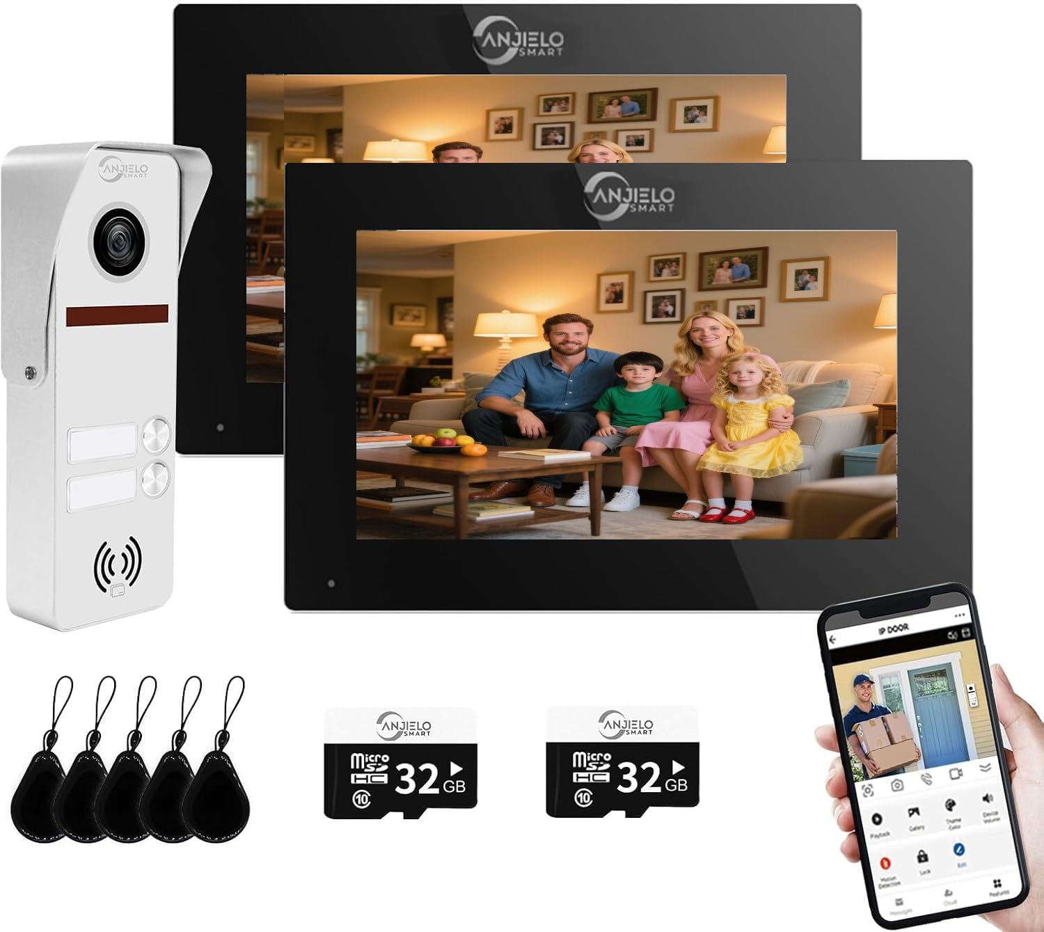 Wired Video Doorbell Intercom System 2 Units 7 Inches Touch Monitor WiFi Video Door Phone Kit,Indoor Outdoor Support Monitoring,3 in 1 Unlock,Dual Way Intercom for Home Apartment,Tuya About Wireless Connetion: Please note the wifi video intercom system not mean it's don't need any cable. The monitor support WIFI network,but the indoor monitor and doorbell is Wired. Video work stable. we will provide the wiring terminal for you connect the extension wires. The doorbell and camera can be extended with RVV4/Cat5/Cat6/RG59 wire, Network cables. The maximum distance can exceed 300ft. The monitor support WiFi network(only connect with 2.4GHZ router band), easily setup video doorbell by connecting to wifi via the Tuya app. If Tuya APP notifications are not received, please check whether the notification permission on your mobile phone and the software are turned on. Outdoor Doorbell: Horizontal resolution: 2MP 1080P Image sensor:Colorful CMOS sensor Sensor Size:1/3,Visual angle:160 degrees Night Vision:IR Cut No color Deviation,B/W Night Vision Panel Material: Aluminum Alloy/ABS Installation: Surface mounting Simple 4 - wire connection Size:145x45x30 mm Indoor Touch Monitor: Screen: 7 inch TFT-LCD touch screen Resolution: 1024 x 680 Ring: 7-chord melody rings Volume,color: Adjustable Connection way: 4-wires, WIFI tuya solution Panel Material: Acrylic/ABS cover Installation: Surface mounting Input voltage:AC 100-240V 50/60Hz Working voltage:DC 12V, 2A Size:198x130x21 mm