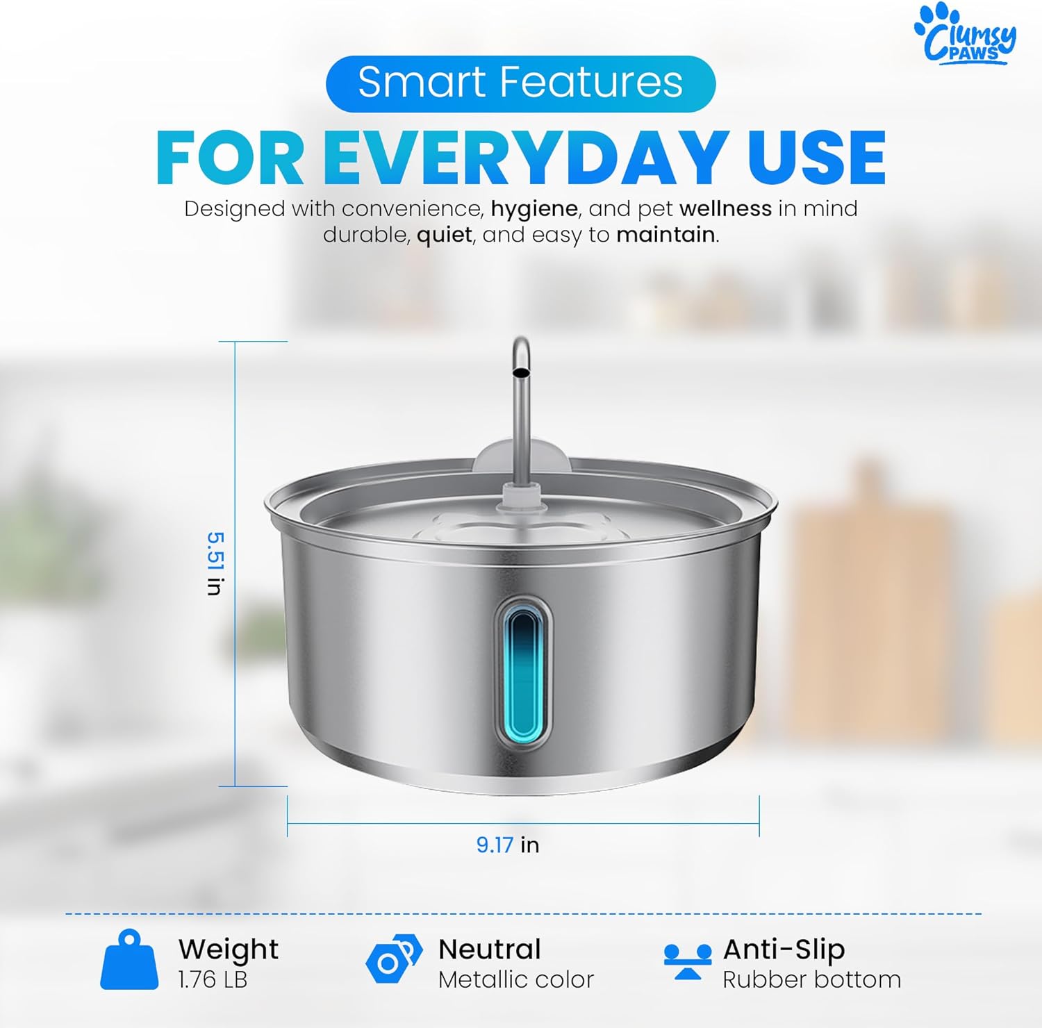 Stainless Steel Dog Water Fountain, 4L Automatic Pet Water Dispenser for Dogs and Cats, Quiet Filtered Fountain with Dual Outlets, USB Power and Anti Slip BaseThis stainless steel dog water fountain provides a constant flow of clean, fresh water for dogs and cats. Designed with an 8L large capacity, itโs ideal for multi pet homes or large breeds. The cat water fountain stainless steel construction is durable, rust resistant, and easy to clean, ensuring long lasting performance and safe drinking for your pets. The quiet pump design creates a calm environment while encouraging hydration through flowing water.Specifications: Capacity: 4 Liters, ideal for cats and dogs Material: 304 stainless steel & ABS plastic Power: USB powered, quiet pump Design: Dual outlet system, anti slip baseKey Features:Durable Steel Design: Made from high quality 304 stainless steel, this stainless steel dog water fountain is rust resistant, safe, and built to last for everyday use.Large 4L Capacity: The large dog water fountain provides plenty of clean water for multiple pets or large breeds, reducing refill frequency and keeping pets hydrated all day.Quiet Operation: Designed for peaceful homes, this quiet cat water fountains system runs silently so pets can drink comfortably without disturbance.Dual Water Flow: This water fountain for dogs features both faucet style and gentle stream outlets to attract pets to drink more and stay healthy.Easy Cleaning: The detachable design makes this stainless steel water bowl for dogs simple to clean and maintain. Filters help keep water fresh and free from odors.