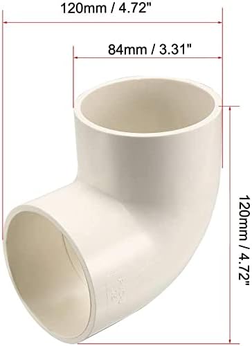 Description:1.90-degree elbow pipe fitting is made of PVC and has connections.2.This 90-degree elbow fitting, or "ell," connects two pipes at a 90-degree angle to change the direction of flow between pipes. It has female openings for sliding over the ends of male unthreaded pipes. The ends connect to pipes with a smooth bore for enhanced flow.3.This fitting is made of PVC for corrosion resistance, high strength, and less weight than fittings made from metal.4.It is compatible with PVC pipes and fittings and is suitable for cold-water pressure distribution systems including irrigation, pool and spa, potable water, and chilled water applications.5.PVC can be connected to other materials such as steel, copper, or cast iron using transition fittings.6.This fitting provides superior flow to metal because of its smooth interior finish, which reduces and inhibits buildup of materials.Specification:Product Name: Pipe FittingMaterial: PVCColor: WhiteType: 90 Degree ElbowSize: 75mm / 2.95"Overall Size (Approx.): 120 x 120 x 84mm / 4.72" x 4.72" x 3.31(L*W*H)Thickness: 4mm / 0.16"Lower Temperature Rating: 40 ° FUpper Temperature Rating: 140 ° FConnector Type: Style: Socket Weight: 1087gPackage Content: 5pcs x Pipe FittingNote: Due to transportation, some items are scratched, but do not affect the use.