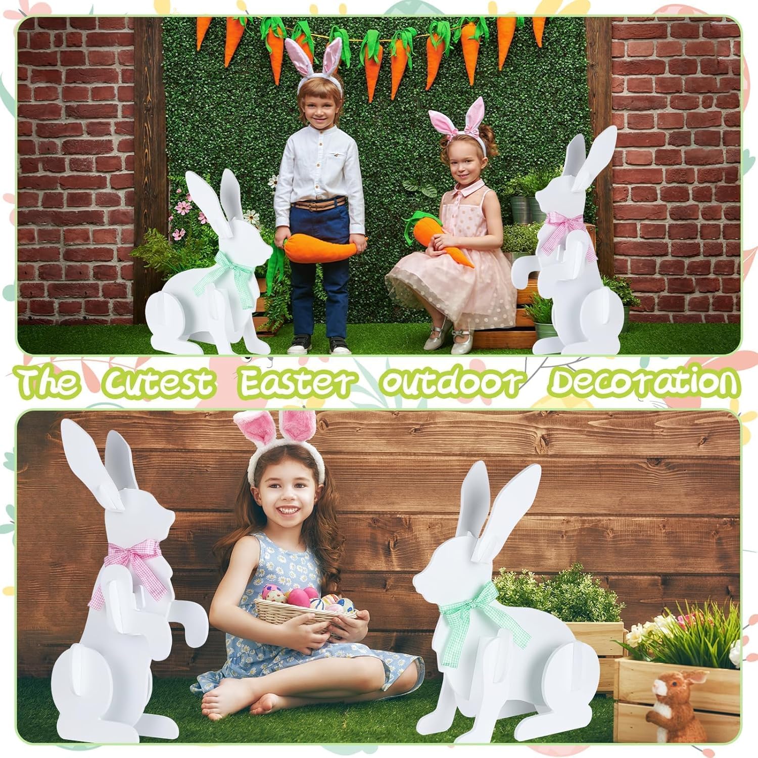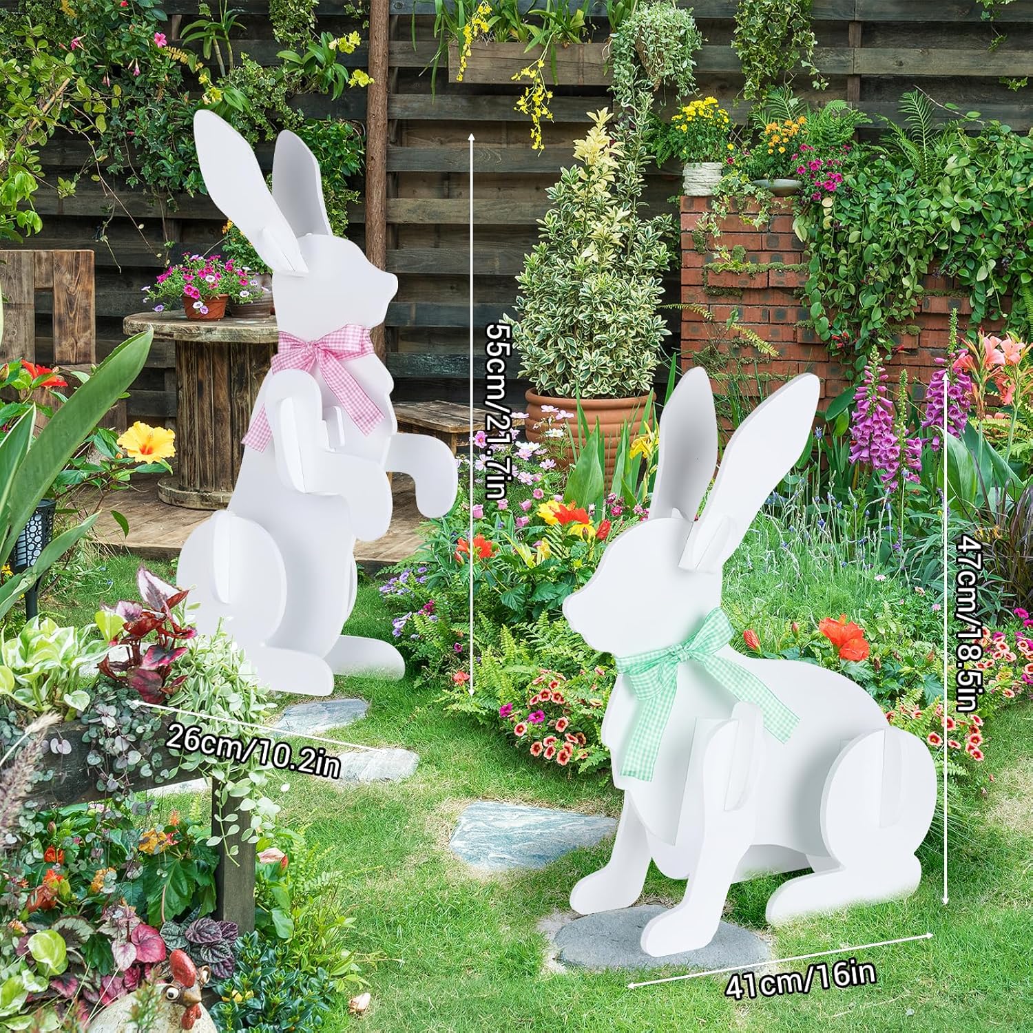 Product Description Here are two large Easter yard rabbits made of high-quality wooden materials. These charming Easter rabbits decorate your home and are perfect for decorating your yard, adding playful colors to your seasonal decor. Material: Wood Color: mainly white Package contents: 2x Easter egg bunny yard sign 2x Ribbon bow Notes: Due to manual measurement, please allow a deviation of 1-2mm. The colors may exist slight difference due to different screens. Decorations